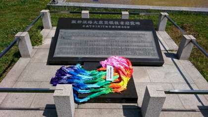 みんなで準備してきた千羽鶴をお渡ししました。千羽鶴は米山さんが慰霊碑の前に置いてくださいました。