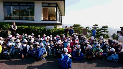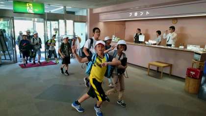 休暇村の方から説明を聞いて、入所の挨拶をしました。