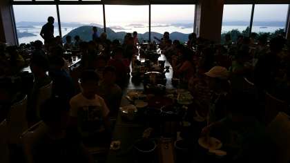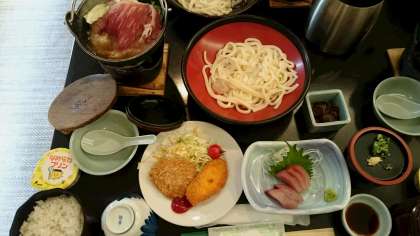 讃岐うどん付の夕食です。食堂からも瀬戸大橋の全景が望めます。