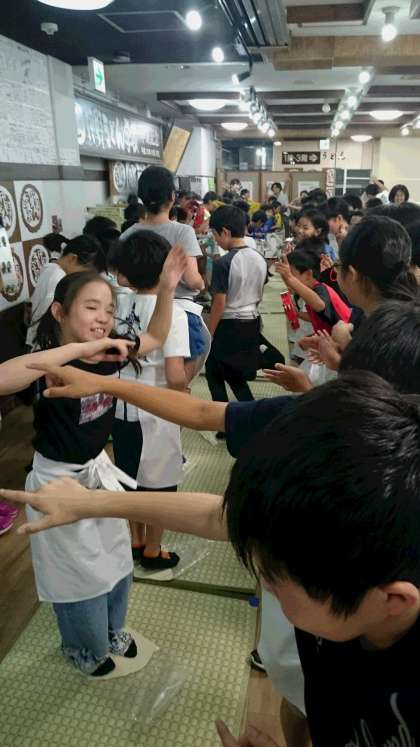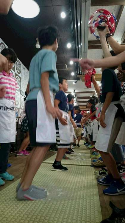 中野うどん学校名物のダンシング生地踏みです❕