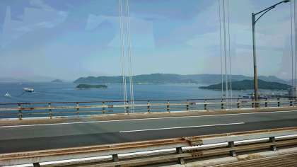 琴平に別れを告げて、瀬戸中央道に入りました。瀬戸大橋を渡り、途中の与島パーキングで休憩です。