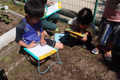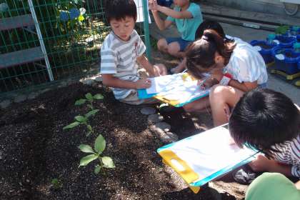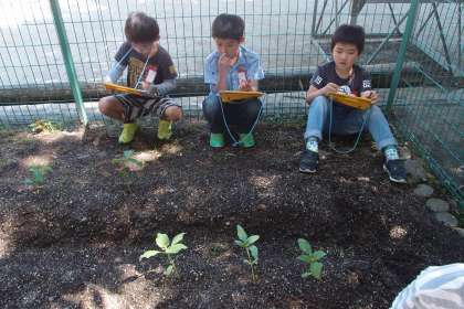 理科で,ダイズ,ヒマワリ,ホウセンカ,マリーゴールドを育てています。今日は,子葉の観察をしました。葉の形や色,大きさが植物によって違うことに気づきました。これからの成長も楽しみです。大切に育てていきたいですね。