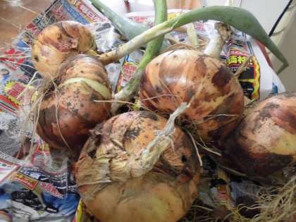 今日は今年度初めてのグリーンスクールがありました。5組は畑の回りの草抜きや,花壇のお手入れをして,見違えるほどきれいになりました。昨年度に植えた玉ねぎがすっかり大きくなっていることに気が付いた5年生が「もう収穫しますか?」と声をかけてくれました。玉ねぎは土から顔を出すほど大きくなっていて,収穫すると玉ねぎの香りがしてくるほどでした。「大きいなぁ!」「いつ食べるの?」と,食べることを楽しみにしているみんなでした。