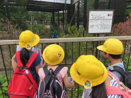 動物園に着いてすぐに,グループ(班)行動をしました。園内の時計の針をよく見ながら,ゴリラやぞうなどを見学しました。