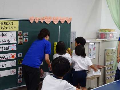 そして,いよいよ試合。試合になると,みんな真剣勝負です。かなりスピードの速い球でも打ち返すことのできる低学年。友だちがやる気のでるような言葉かけをする高学年。みんな,それぞれの持ち味…それ以上を出すことができました。