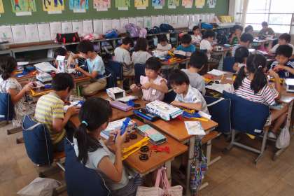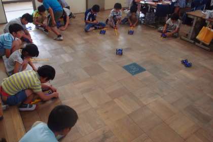 理科では,「ゴムや風でものをうごかそう」という単元に入りました。今日は,ゴムで動く車を作り,動かして遊びました。作るときは,班で協力し,教え合いながら作ることができました。動かす時には,ゴムの伸ばし方を調節して100点の的を狙いました。これからいろいろな実験を通して,ゴムの性質を調べていきます。