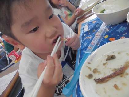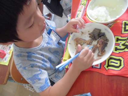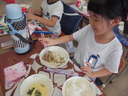 「匂いがおいしそう。」や「骨がいっぱいあったよ。」など給食をあじわうことができました。