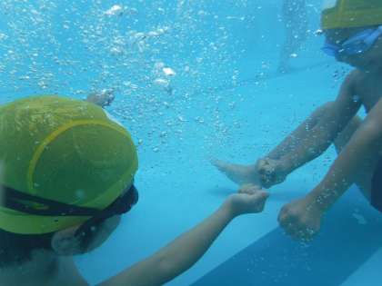 2人ペアになり,こちらが声をかけなくても子どもたち同士で練習する姿が微笑ましかったです。また,水中じゃんけんや股くぐりを楽しんでいる子もたくさんいました。