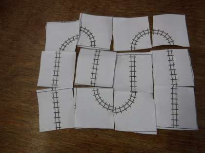 学びをいかそうの学習で,線路作りを楽しみました。