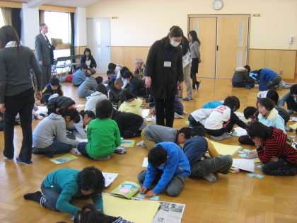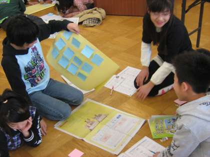 子どもの環境教育に取り組んでおられる団体から来て頂いた方やボランティアの方々の協力を得て、この冬休みの自分達のエコライフについて振り返りをしました。