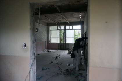 夏休みに入り,南校舎の2階と3階のトイレの工事が始まっています。これで1階のトイレも含めて校舎内の全てのトイレが快適トイレになります。