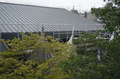体育館の工事は,屋根が葺き終わりました。今回のリニューアル工事では屋根にも断熱材がしっかり張られているので,真夏の暑さの影響を受けにくい体育館に生まれ変わると思われます。