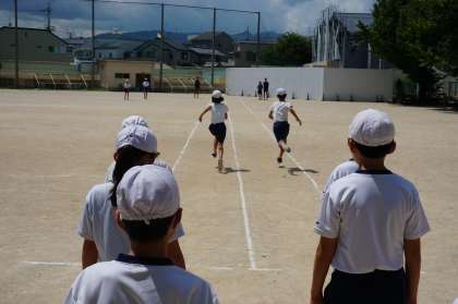 今日は学生さんが3人来校し,6年生の50m走の計測と疾走フォームの撮影を行いました。子ども達はいつもの50m走の計測とは違う緊張感の中で,一生懸命走っていました。どのような研究成果が得られるのか楽しみです。