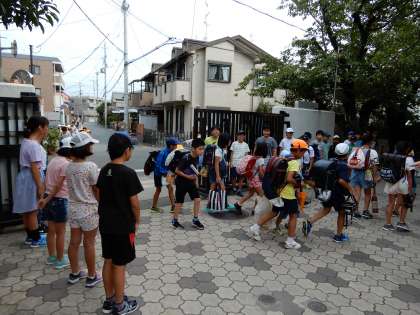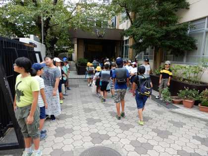 初日は5年1組です。集団登校してきた子からどんどんあいさつの列に加わります。まだまだ蒸し暑さが続きますが,全校で暑さを吹き飛ばす「爽やかなあいさつ」をしましょう。