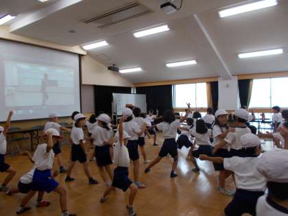 夏休みが終わり,2学期が始まったばかりですが,今日から運動会の練習が始まりました。体育館が工事中のため,アイルームでの練習となりましたが,映像を見ながら楽しそうに踊る姿が微笑ましかったです。きっと,おうちでも踊ったり,歌ったりしている子もいるのではないでしょうか。これからさらに頑張って練習していきます。