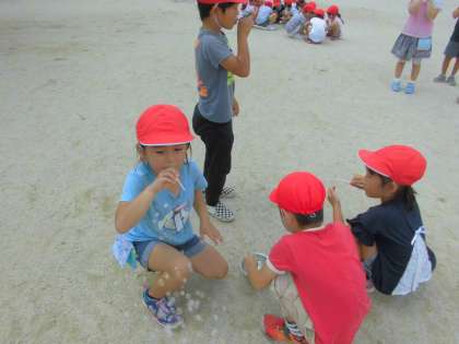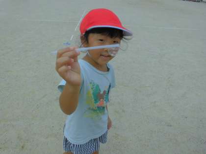 1年生は,暑さに負けず。しゃぼん玉を作りました。