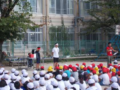 今日は,朝会で運動会の赤・白決定を行いました。9月29日(土)の運動会に向けての準備が進んでいます。
