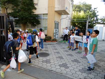 明日,台風21号が近畿地方に接近・上陸するとは予想できないような良い天気です。4年生は週明けから元気にあいさつしてくれました。