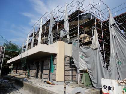 台風21号が大きな爪痕を残した一方,体育館のリニューアル工事と南校舎の快適トイレの工事現場には大きな被害はなかったようです。