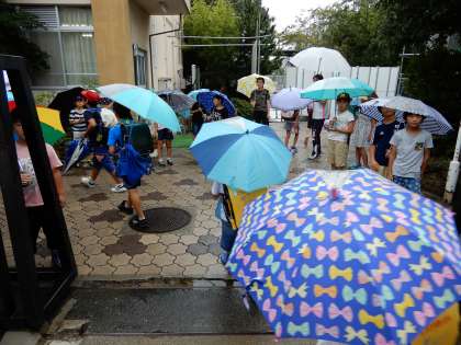 傘を差しながらですが,頑張って最後まで挨拶運動に取り組んでくれました。週間天気予報では,来週前半も天気がぐずつきそうなので,雨のあいさつ運動になりそうです。雨を吹き飛ばす「爽やかな挨拶」をしたいですね。