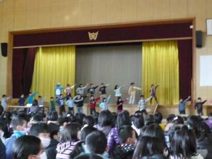 劇の最後には、2年生が全員で体育館の周りに広がって、「ハッピー・ドリーム」というダンスを踊って終わりました。子ども達一人ひとりが伸び伸びと演技する姿を保護者の方々の前で見ていただくことができました。