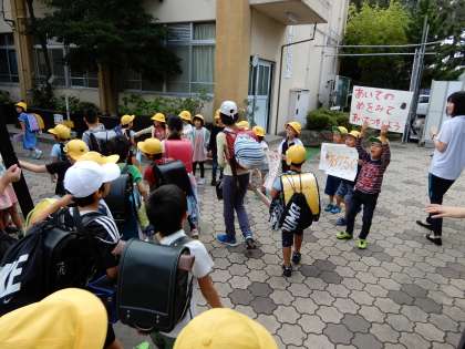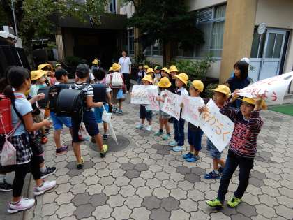 今朝は1年1組です。初めてのあいさつ運動なので,みんな大張り切りです。初々しいあいさつ運動をしてくれました。