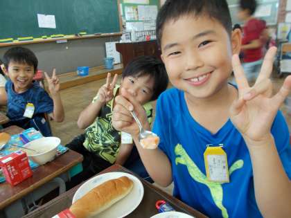 今日の給食は,みんなが大すきなシチューです。「いただきます。」をした後に喜ぶ子どもたちの声。「星があった!!」「ハートがあった!!」まさかあるとは思っていなかったかわいい人参に周りのみんなも嬉しそうでした。