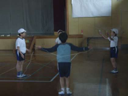 苦手な子も入りやすいようにと,大きくゆっくり縄を回す姿もたくさん見られました。