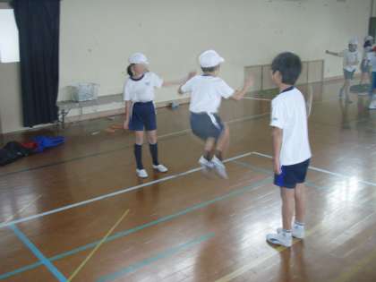 前とびや後ろとびなど,色々な跳び方で ピョンピョンと跳ぶ子どもたちは