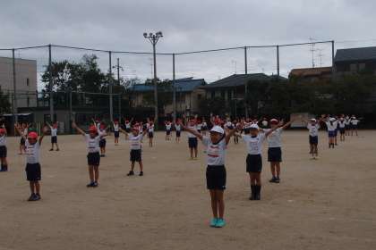 台風の目の入場ダンスの練習も頑張っています。運動場での位置を覚え,元気いっぱいに踊っています。当日は笑顔いっぱいに踊ってほしいです。