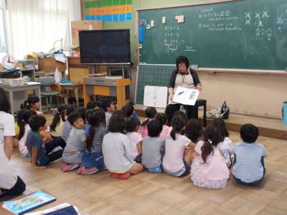 今日は,0のつく日だったので,クローバーの会による読み聞かせの会がありました。