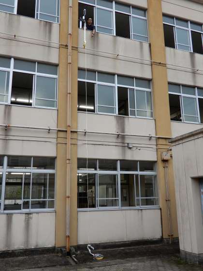実際に3階から降りるとなると,窓から身を乗り出すだけでもかなりの恐怖心を抱くことが実感されました。この装置を使う機会がないことが最も望ましいのですが,この機会に使い方も教えていただきました。
