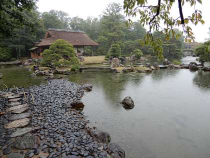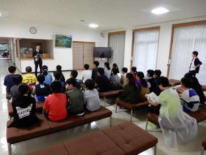 桂離宮参観のはじめに,参観者休所で宮内庁京都事務所の田村さんから説明を聞きました。今日の参観では宮内庁の田村さんと池田さんにお世話になりました。
