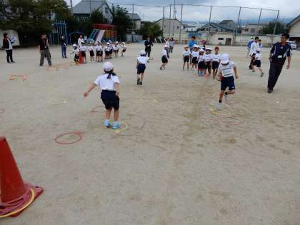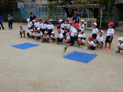 体育科の学習の進め方に慣れてきた1年生は,自分たちで,役割分担に沿って,瞬く間に運動の場の準備や片付けをしていました。