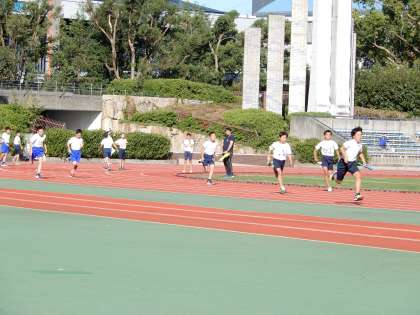 陸上競技記録会はメイントラックで,トラック競技とフィールド競技を行い,持久走記録会はサブトラックで,ソフトボール投げと1500m走を行いました。
