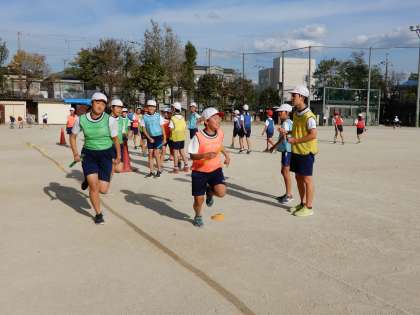 6年生はリレーの単元の学習に取り組んでいます。