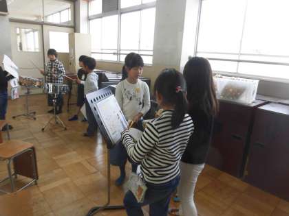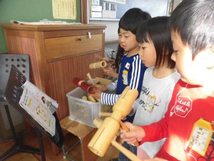 普段なかなか使うことのない「クラベス」,「小太鼓」,「ウッドブトック」などにも触れることができ嬉しそうでした。実際にたたいてみることで,どんな音がでるのかよくわかったようです。