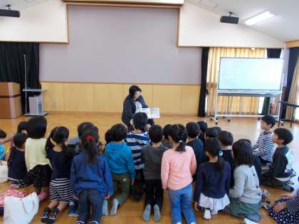 今回は,「オリジナルたこづくり」でした。最初に読書ボランティア「クローバーの会」の方に,たこあげにまつわる本の読み聞かせをしていただいた後,たこを作りました。