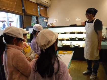 などと,子どもらしい質問をしたり,それぞれの仕事の大変な事やしていて嬉しかったことなども聞いたりしていました。どのお店も丁寧に教えていただき,子どもたちは大満足。にこにこ笑顔で学校に帰りました。