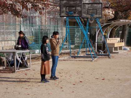 11月の児童朝会も体育館が改修中のため,運動場で行われました。校長先生からの人権についてのお話の後,児童会からのお知らせや表彰等がありました。