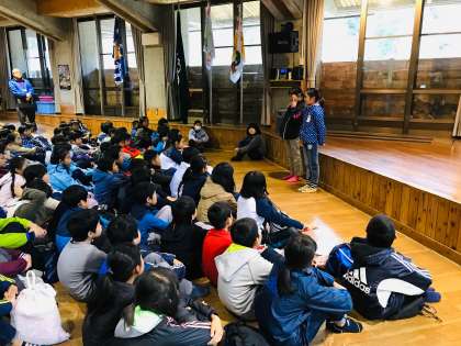 リーダーからの挨拶で始まり、これから宿泊学習が始まっていきます。
