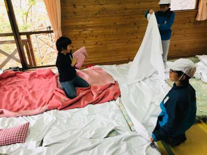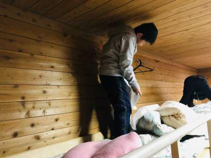 寝る準備をしてこれから魚つかみをします!