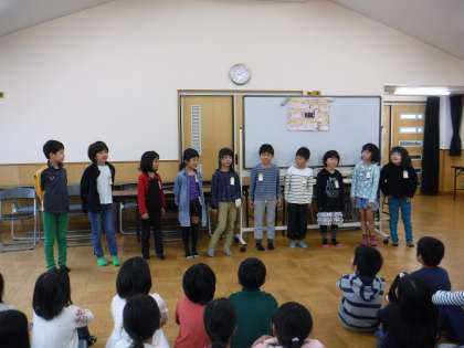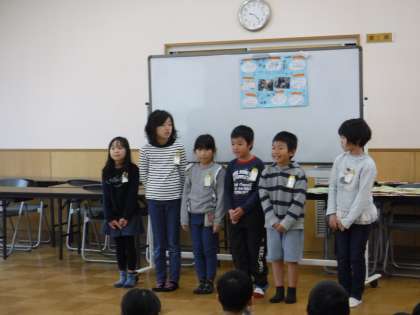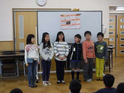 町探検でインタビューしてきたことをまとめ,今日はグループごとに発表しました。