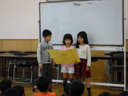 最後はダックスの店長さんから聞いた話をまとめたグループの発表でした。みんなに聞こえる声で,お店の良い所を伝えてくれました。
