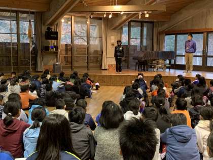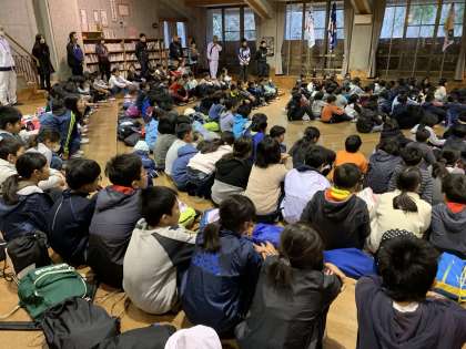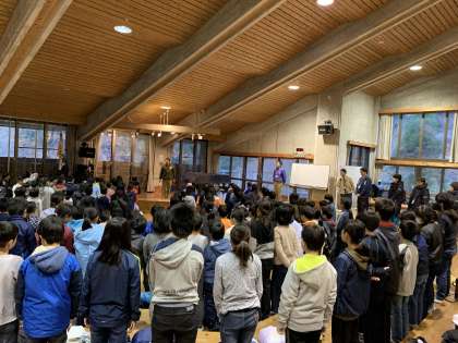 合同の朝の集いです。1日元気に過ごしましょう!