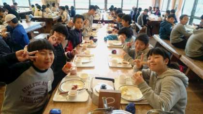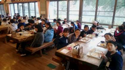 「雲取山登山」に向けて、しっかり食べました。少し晴れ間が出てきました。