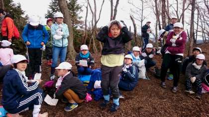 雲取山で昼食です。日差しがあるので寒さはましですが、北風はかなり冷たく感じます。