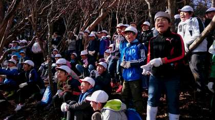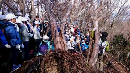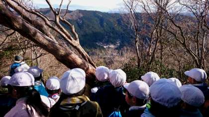 山の家が眼下に見える「ヤッホーポイント」で,山の家に声が届くか実験しました。