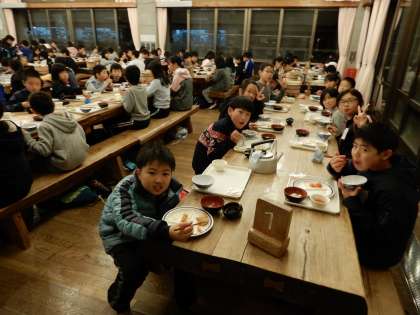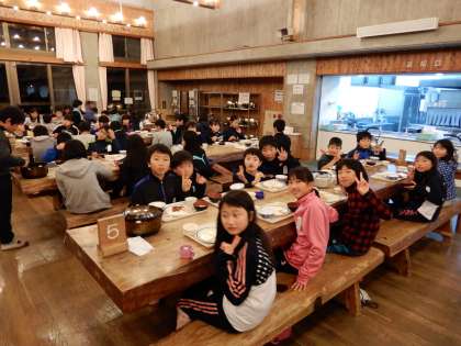 花背山の家での最後の夕食です。雲取山登山でしっかり歩いたため、みんなしっかり食事をしていました。ご馳走様でした。