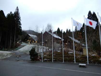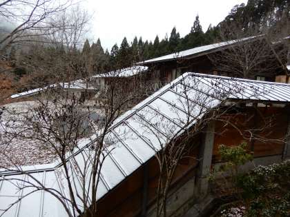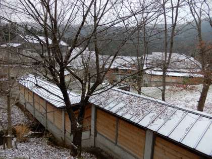 12月9日(日)6:30現在の気温はマイナス2.3度でした。花背山の家は小雪が降っています。